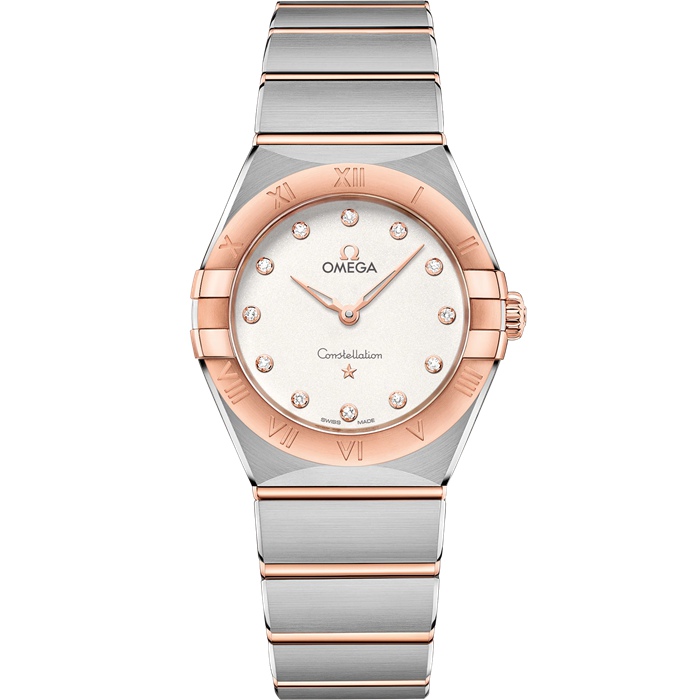 L’esthétique reconnaissable et intemporelle de la collection OMEGA Constellation se caractérise par ses fameuses demi-lunes, la présence des célèbres « griffes » sur la lunette et son bracelet mono-rang.