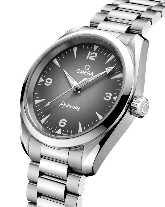 Le boîtier symétrique de 38 mm, poli et satiné, est monté sur un bracelet intégré doté d’un système de réglage confort optimal et de maillons polis et satinés. Reprenant la lisibilité remarquable de la Railmaster originale, le cadran gris est orné d’un dégradé noir ainsi que de grands chiffres et index revêtus de Super-LumiNova blanc.