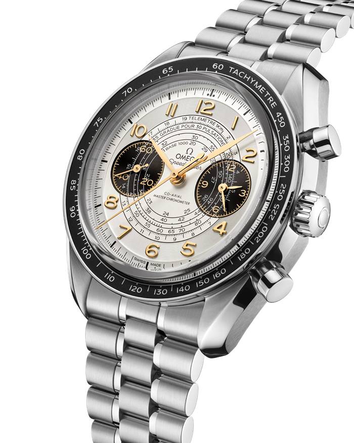 Proposée avec un bracelet en acier inoxydable doté du système de réglage confort breveté OMEGA, la montre possède également un compteur de petite seconde à 9 heures et un totalisateur de 60 minutes et 12 heures à 3 heures. La montre est animée par le mouvement OMEGA Co-Axial Master Chronometer 9908.
