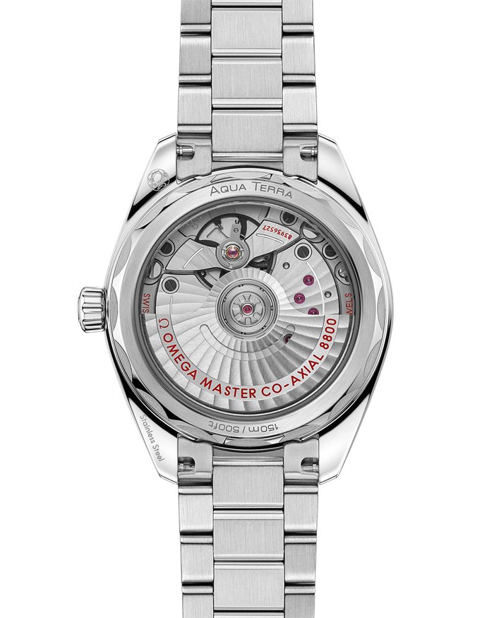 La Seamaster Aqua Terra constitue un magnifique hommage au vaste patrimoine maritime d’OMEGA. Ce modèle de 34mm possède un boîtier symétrique et une lunette en acier inoxydable entièrement poli ainsi qu’un fond de boîtier orné d’un motif vagues.