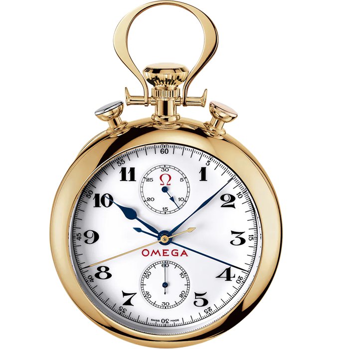 La montre de poche olympique est animée par un ancien mouvement dont les composants, stockés depuis1932 au siège OMEGA de Bienne en Suisse, ont été enfin assemblés. Cette petite merveille horlogère en or jaune18K ressuscite ainsi l’un des garde-temps les plus célèbres de la Maison: le chronographe à gousset de1932.