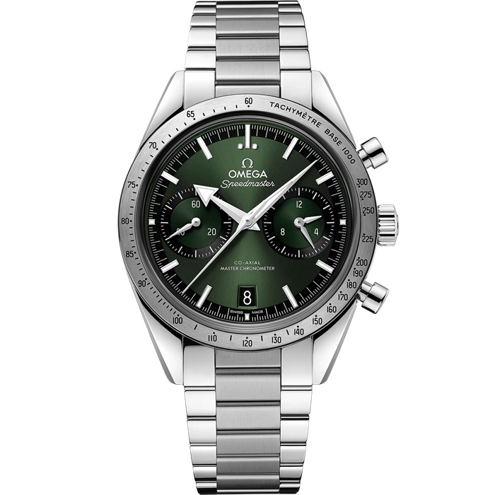 Cette montre de 40,50 mm, inspirée du modèle original iconique de 1957, arbore un boîtier en acier inoxydable et un cadran vert doté d’index rhodiés et d’aiguilles « Broad Arrow », tous revêtus de Super-LumiNova blanc. Le modèle comporte un guichet de date à 6 heures, un compteur de petite seconde à 9 heures, et un compteur des heures et des minutes à 3 heures.